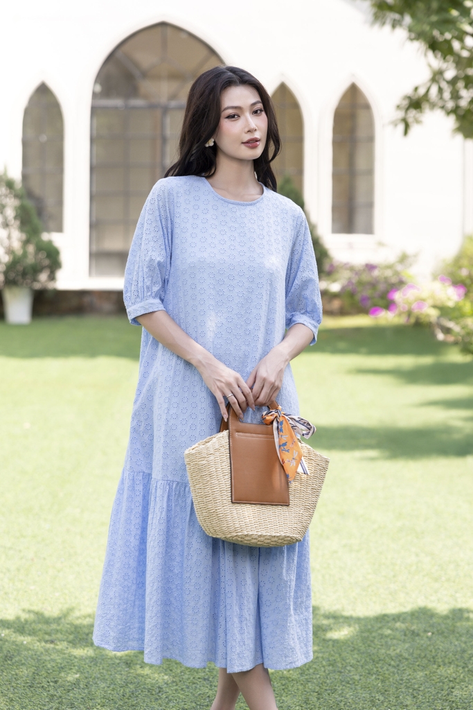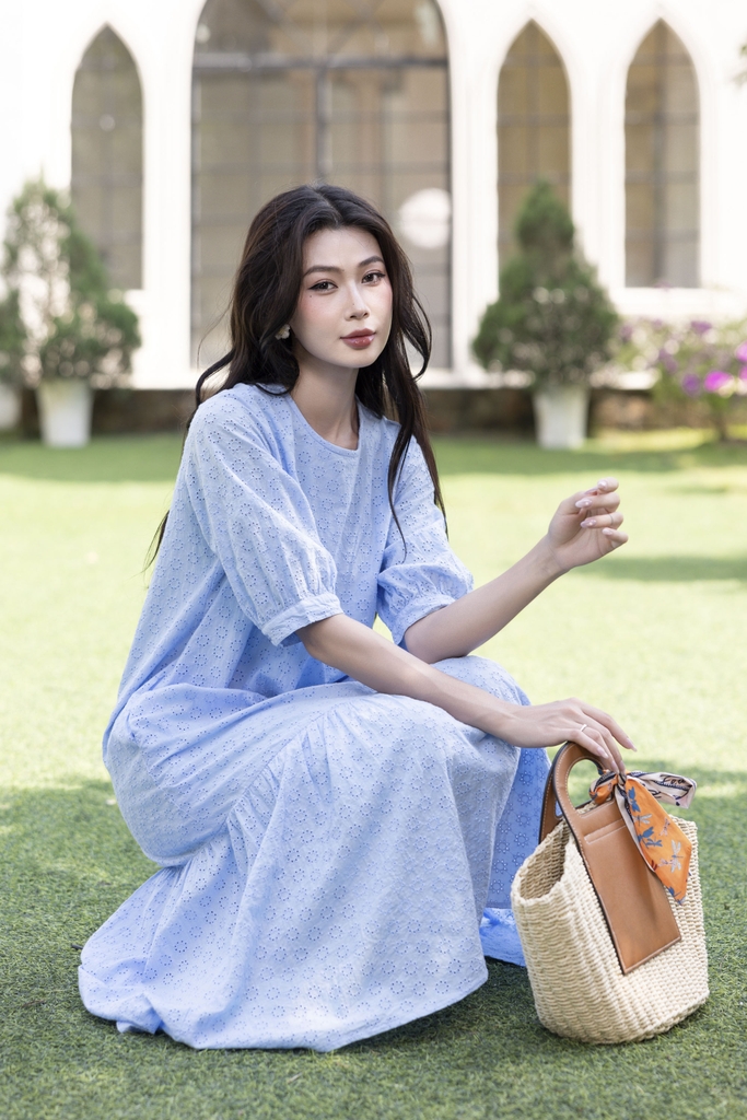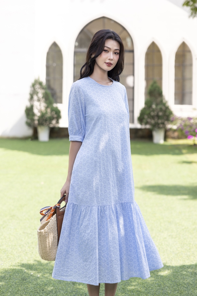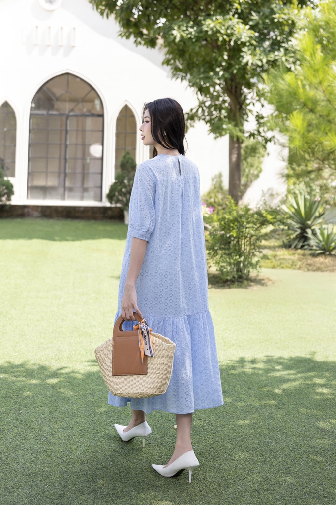 SWANLAKE | Váy Đầm Nữ Maxi Suông Đuôi Cá Vải Cotton Thêu Đục Lỗ 2 Lớp Có Túi Du Lịch Đi Biển D11522