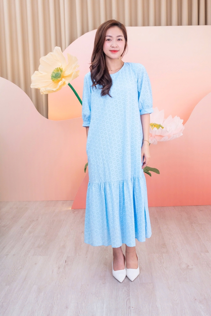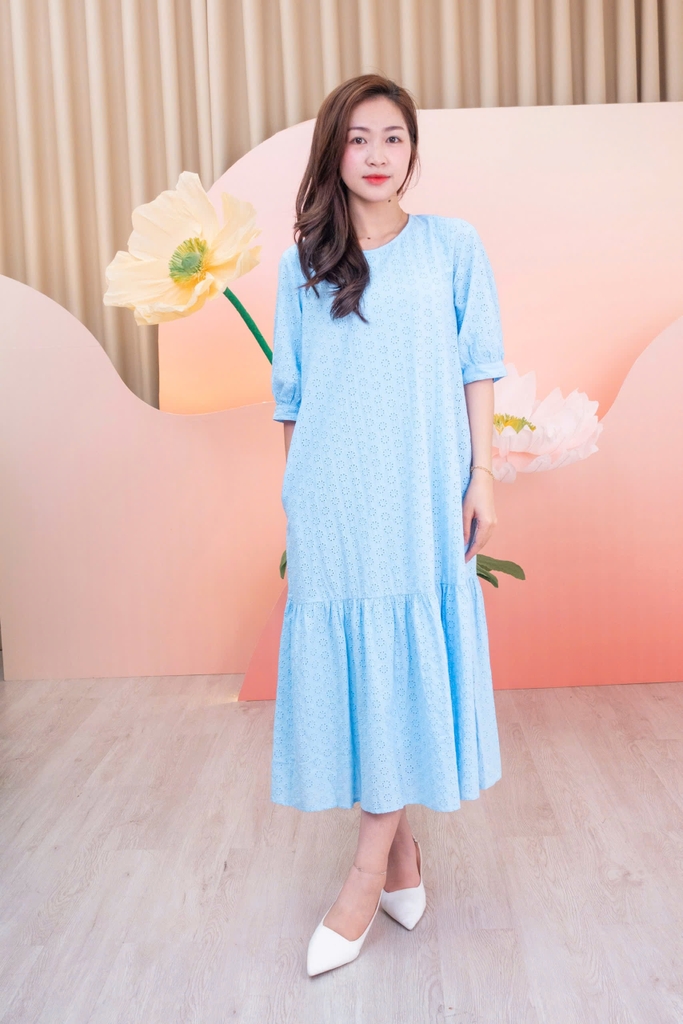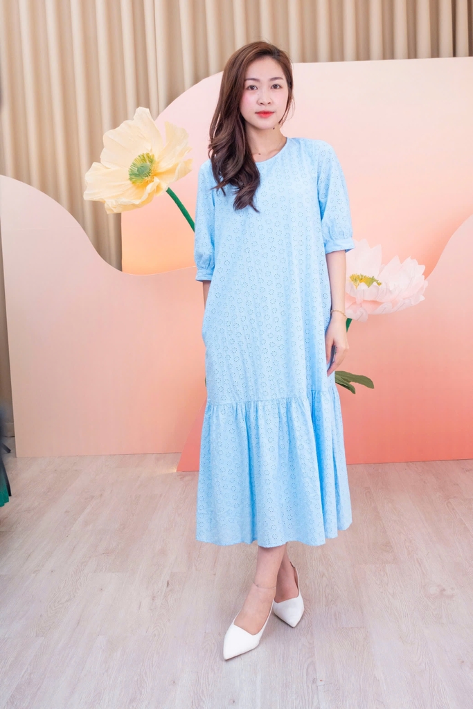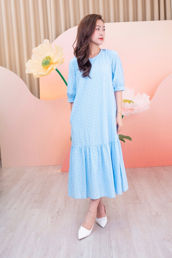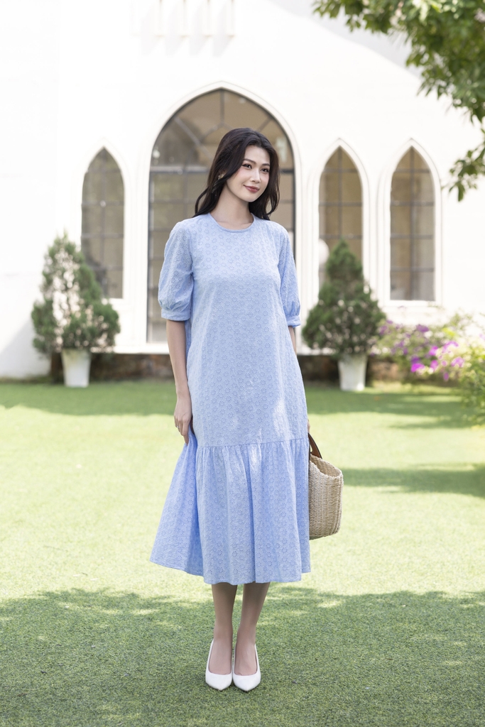 SWANLAKE | Váy Đầm Nữ Maxi Suông Đuôi Cá Vải Cotton Thêu Đục Lỗ 2 Lớp Có Túi Du Lịch Đi Biển D11522