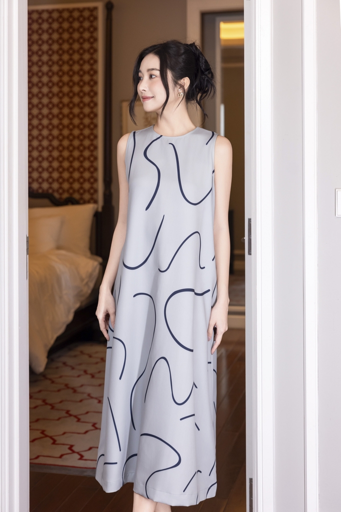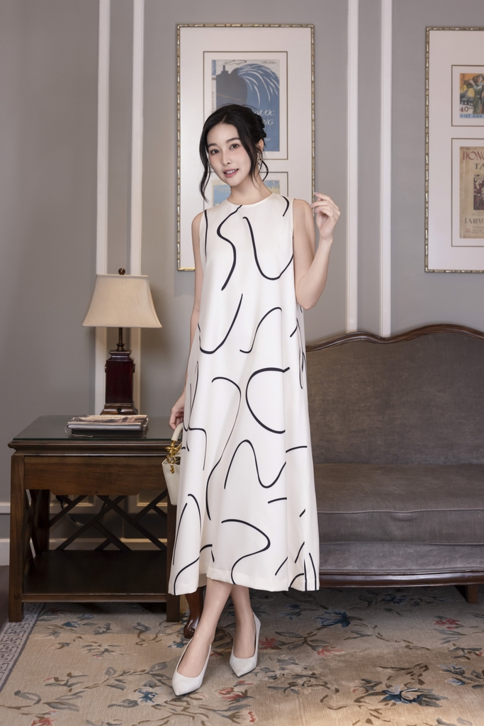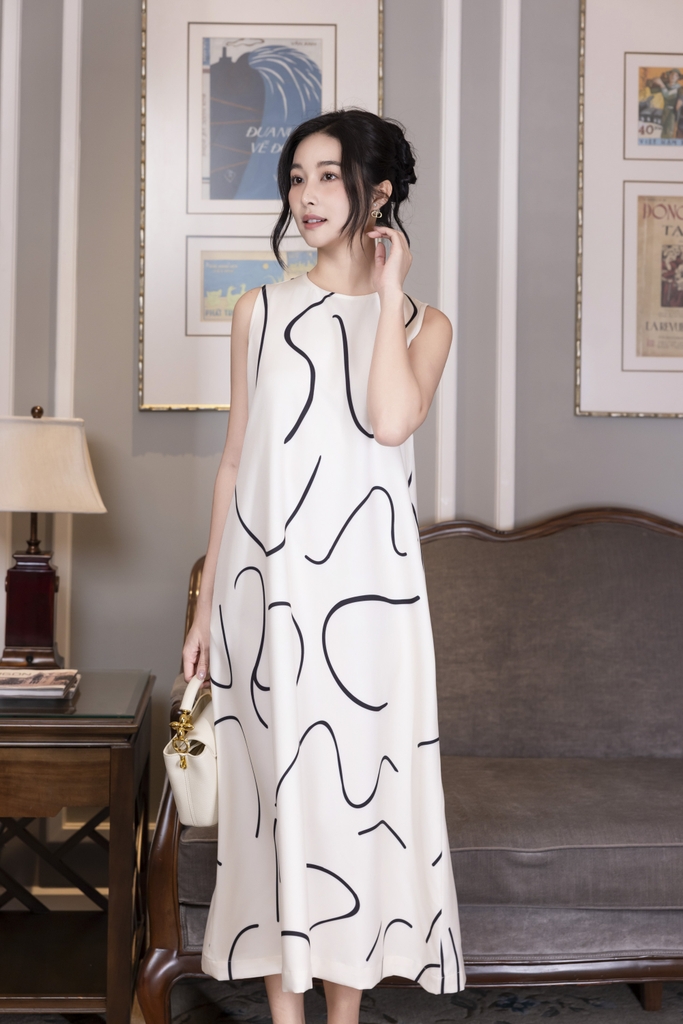 SWANLAKE | Váy Đầm Nữ Maxi Suông Sát Nách Có Túi In Vệt Màu Lụa Dày Co Giãn Du Lịch Biển Hè D12095LW06