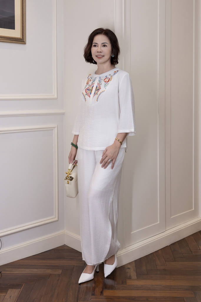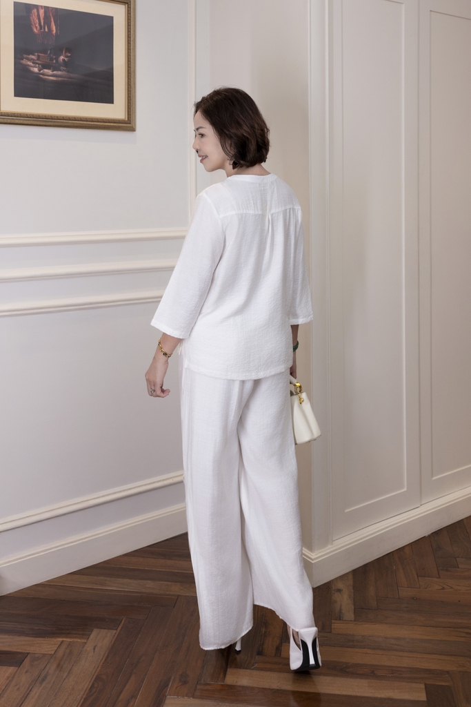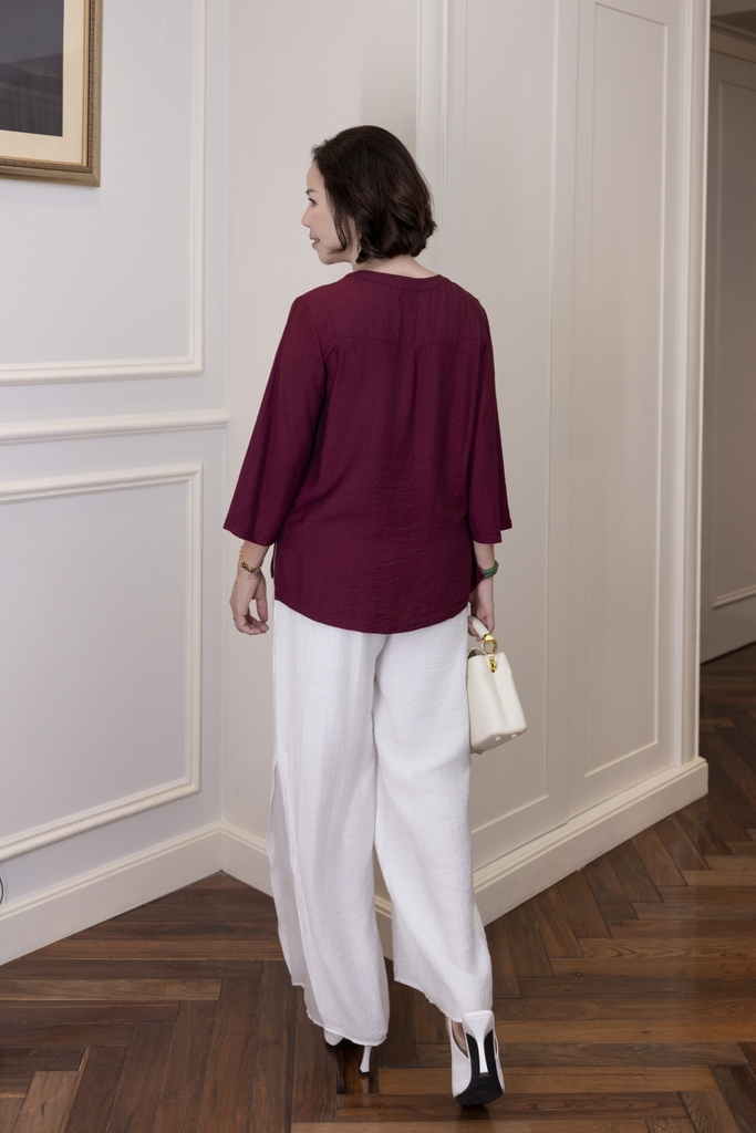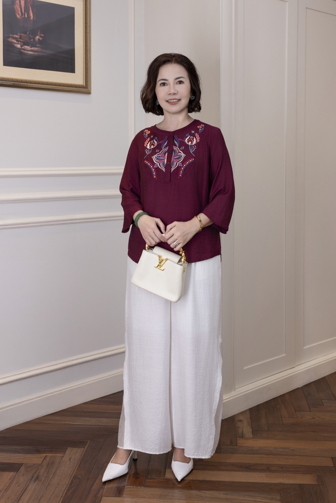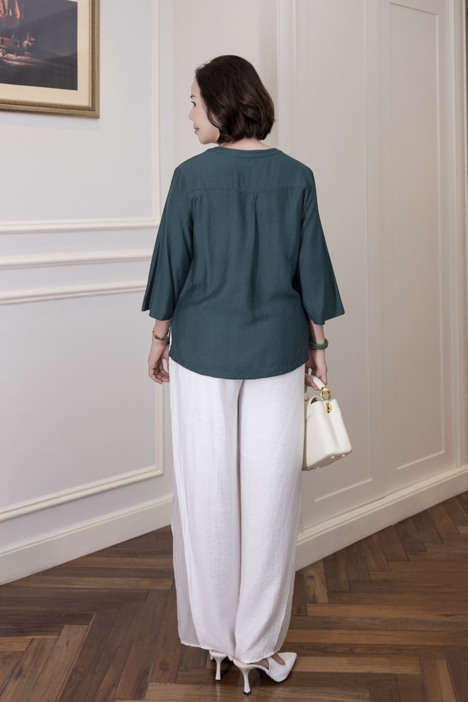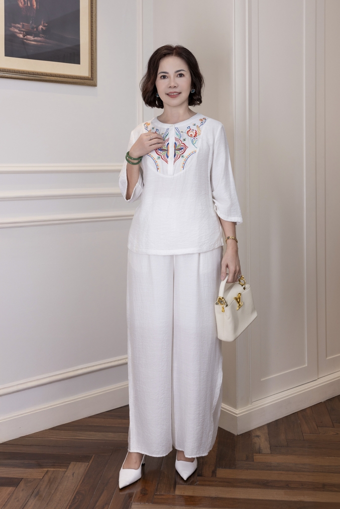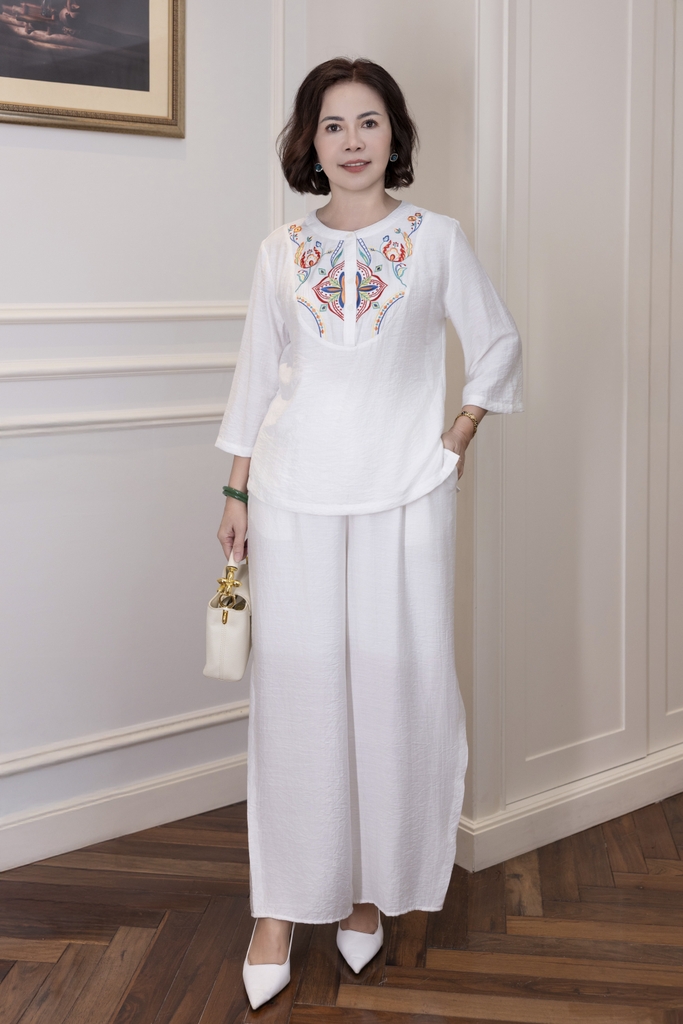 M Collection | Áo Kiểu Trung Niên Tặng Mẹ Cổ Tròn Cài Nút Tay Lỡ Thêu Hoa Chất Vải Lụa Hàn A13107LW01