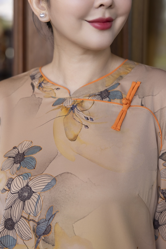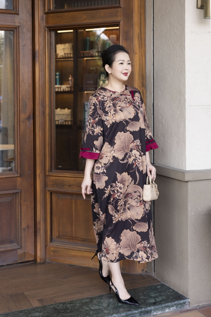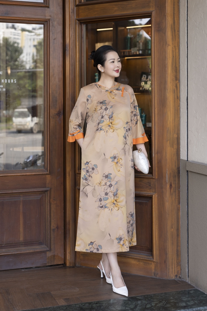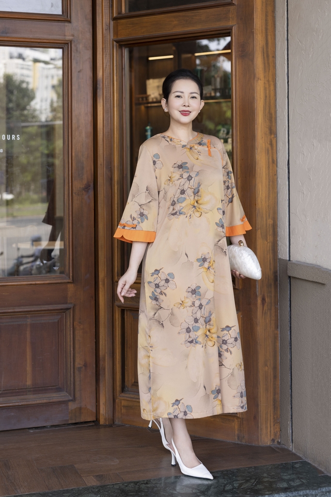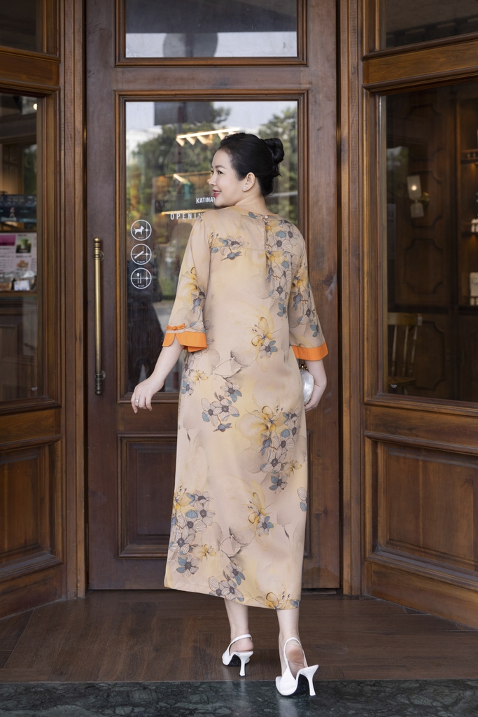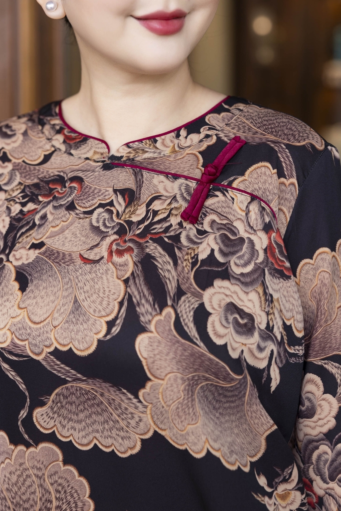 M COLLECTION | Váy Đầm Suông Nữ Trung Niên Tặng Mẹ, Bà Vải Lụa Hai Da Thêu Hoa Tay Lỡ D13203LW01