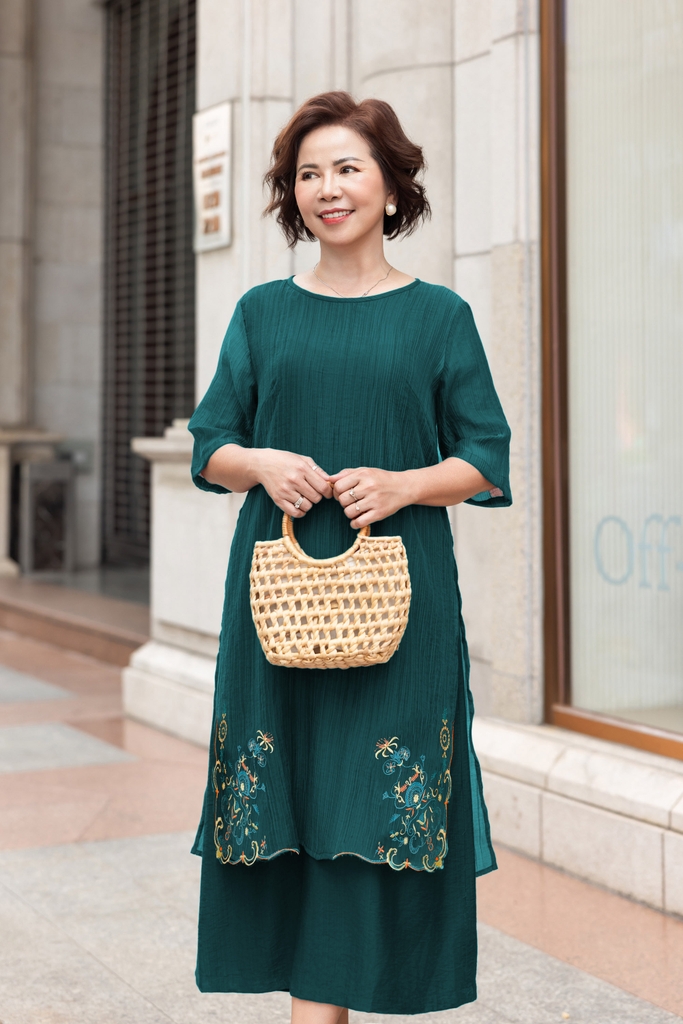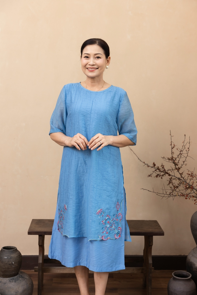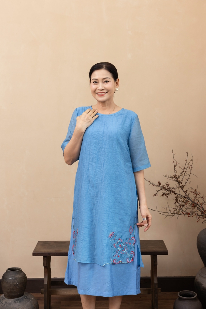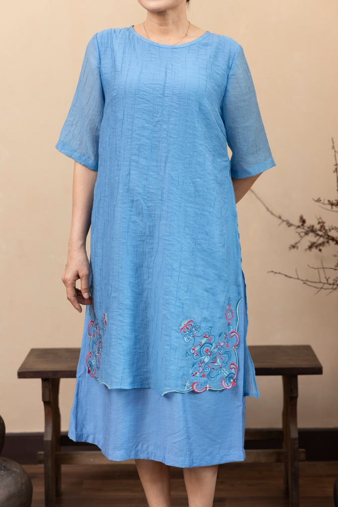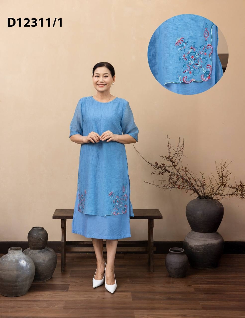 M Collection | Váy Đầm Trung Niên Tặng Mẹ Phom A Hai Lớp Cổ Tròn Tay Lỡ Chất Liệu Xốp Hàn Thêu Hoạ Tiết - D12311LW01