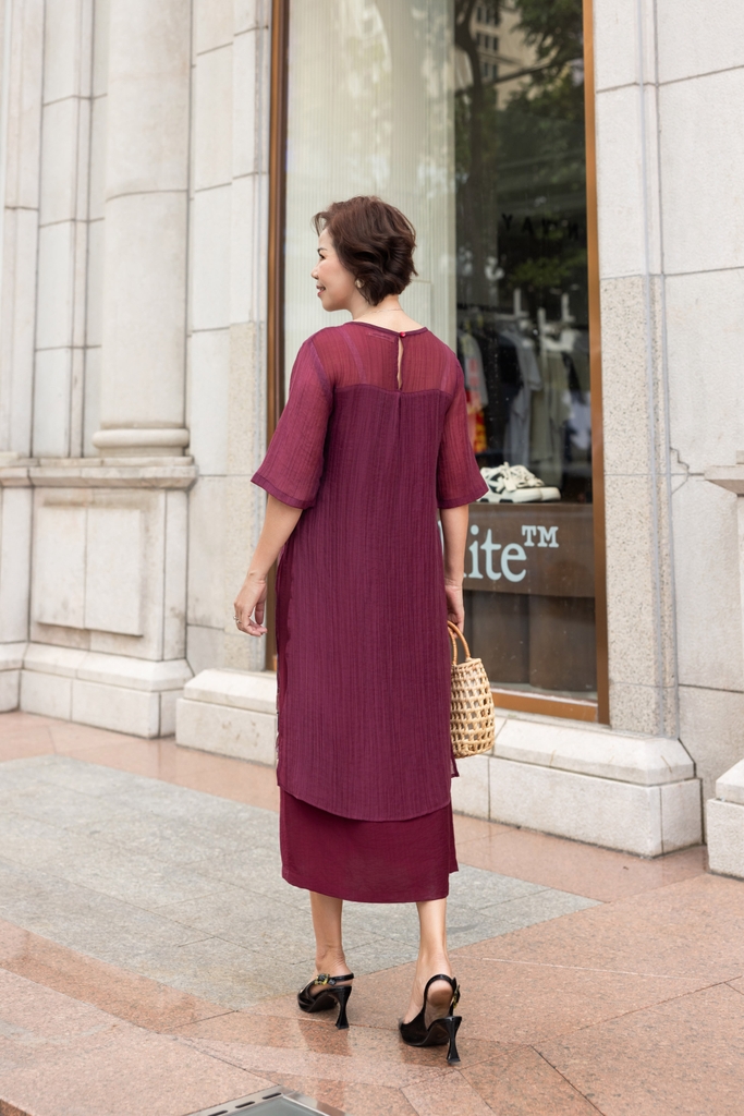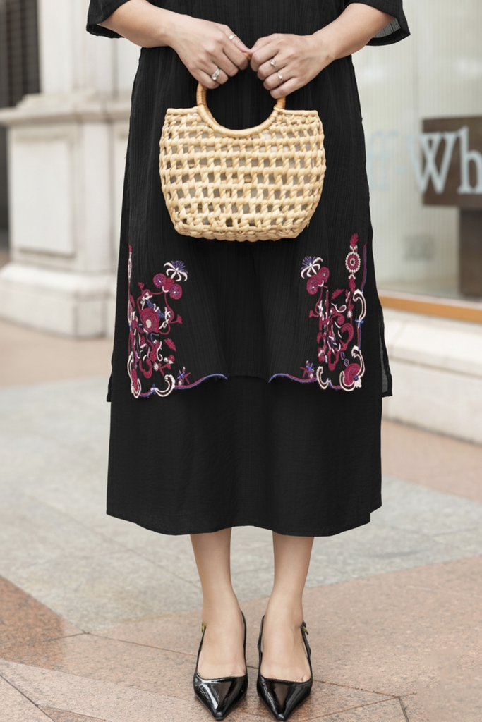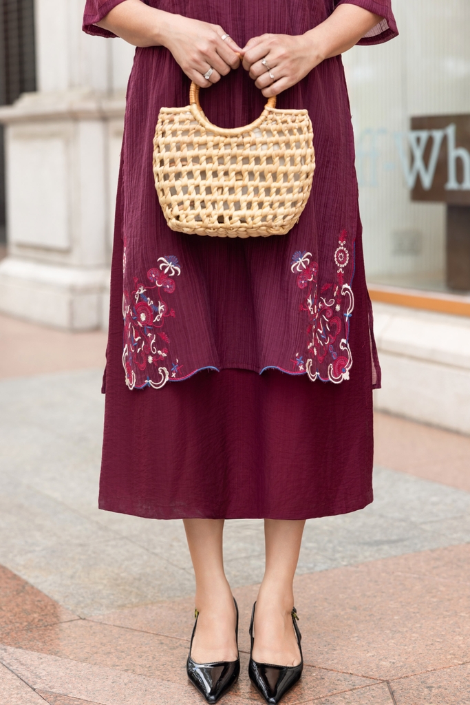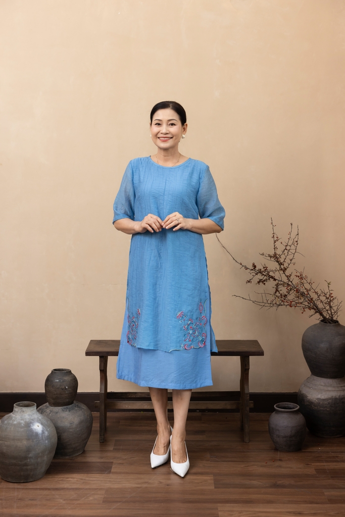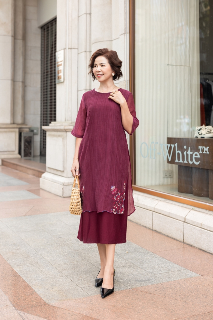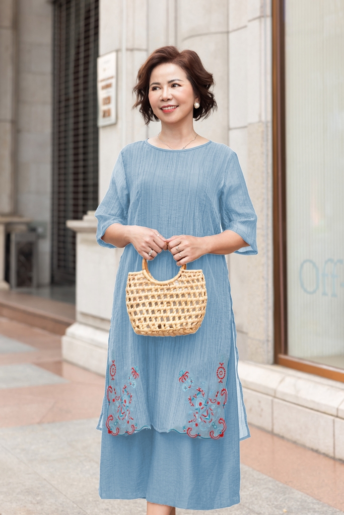 M Collection | Váy Đầm Trung Niên Tặng Mẹ Phom A Hai Lớp Cổ Tròn Tay Lỡ Chất Liệu Xốp Hàn Thêu Hoạ Tiết - D12311LW01