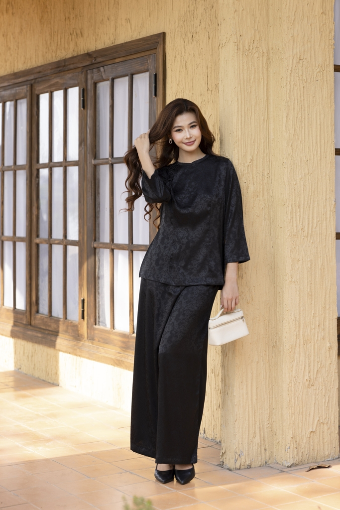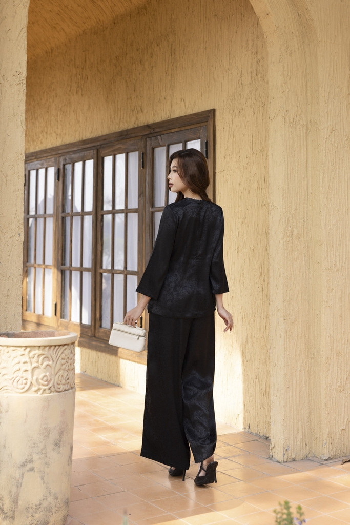 SWANLAKE | Set Bộ Áo Quần Pháp Phục Gấm Hoa Cao Cấp Cổ Trụ Tay Lỡ Đồ Lam Bà Ba Đi Chùa Tết B13388LW01