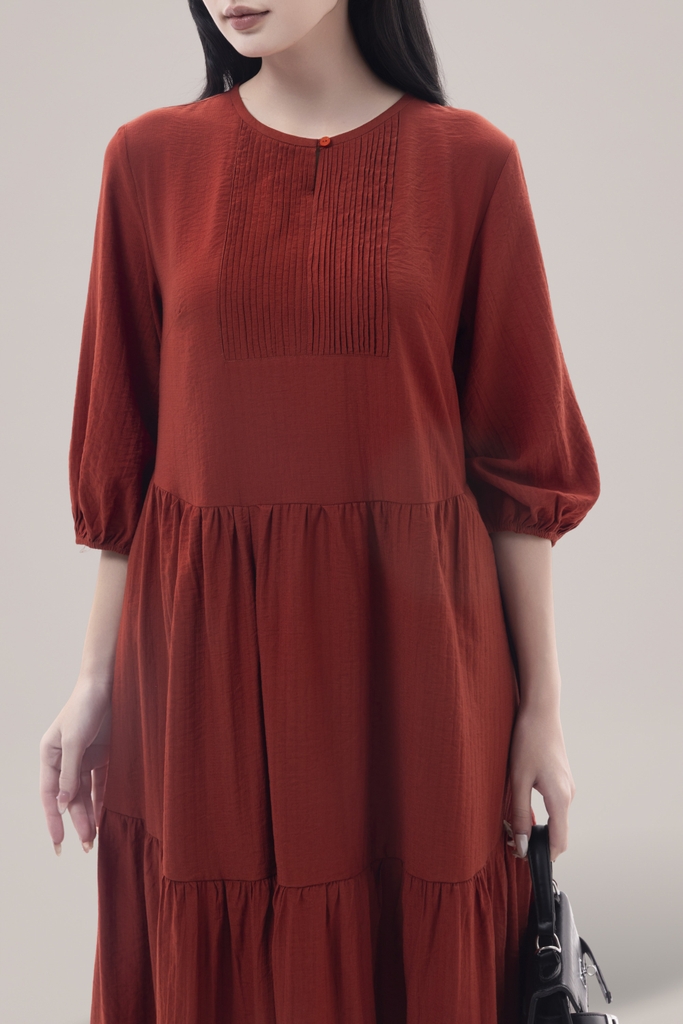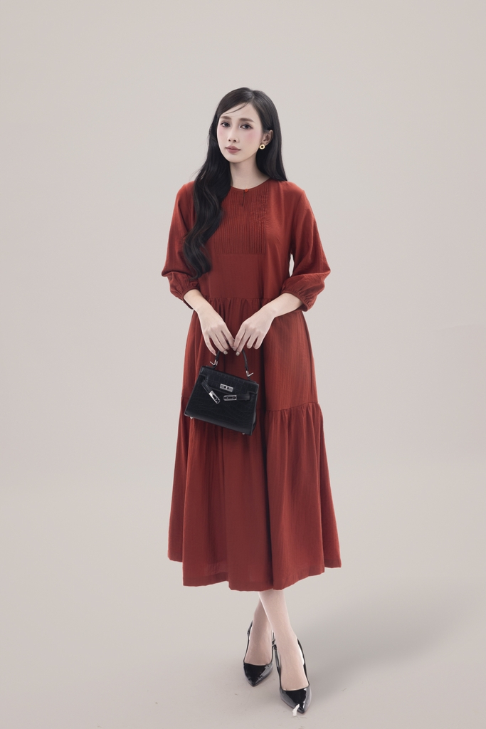 SWANLAKE | Váy Đầm Nữ Maxi Đuôi Cá Xếp Tầng Tay Lỡ Cổ Tròn Vải Xô Tăm Dự Tiệc Công Sở D13051LW01