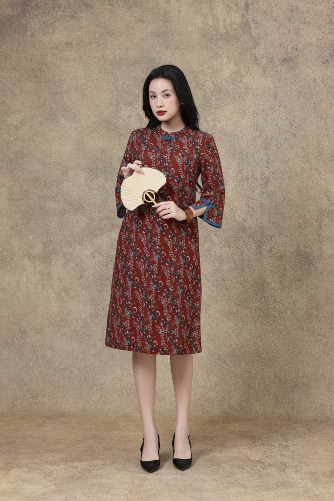 SWANLAKE | Váy Đầm Nữ Midi Suông Phom A Tay Lỡ Cổ Tàu Vải Linen Bông Sang Trọng Dự Tiệc D13241LW01