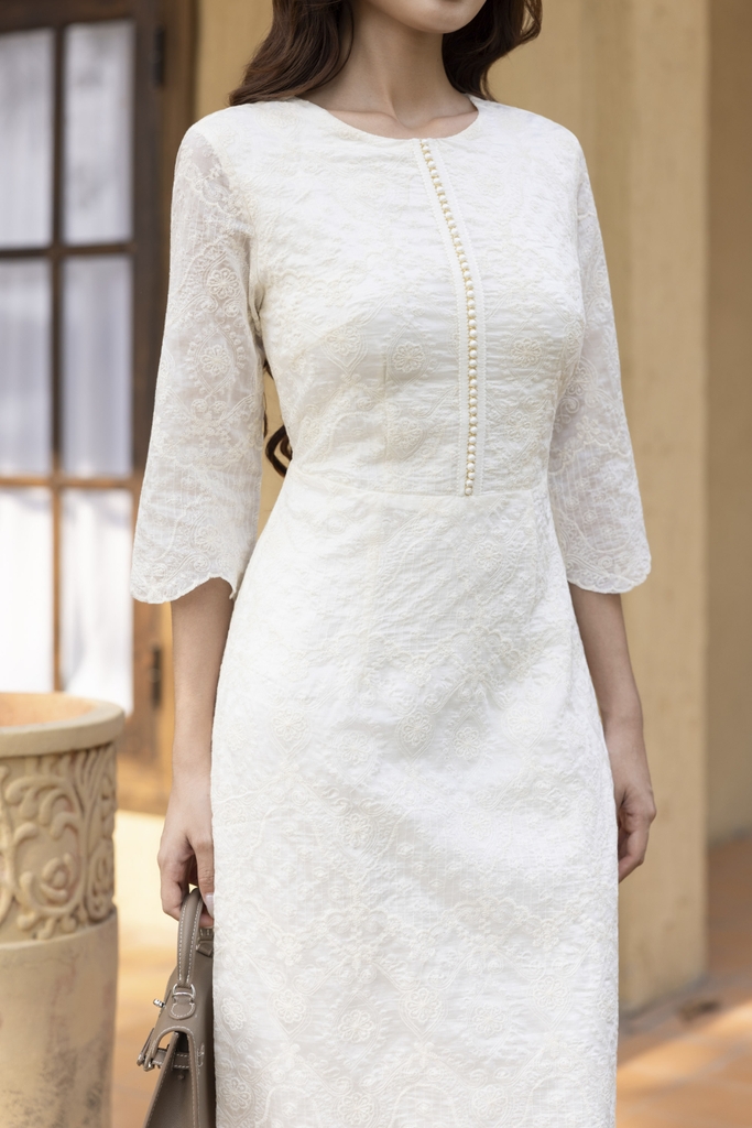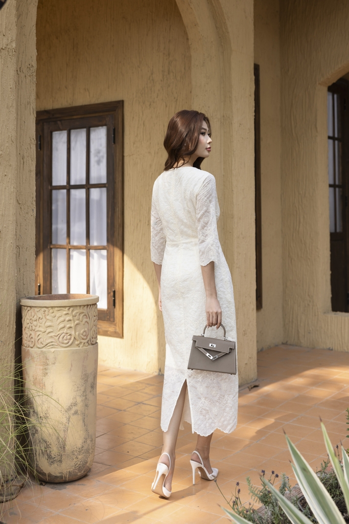 SWANLAKE | Váy Đầm Nữ Phối Ren Hoa Cao Cấp Cổ Tròn Tay Lỡ Chiết Eo Xẻ Tà Tiệc Sang Trọng D13395LW01
