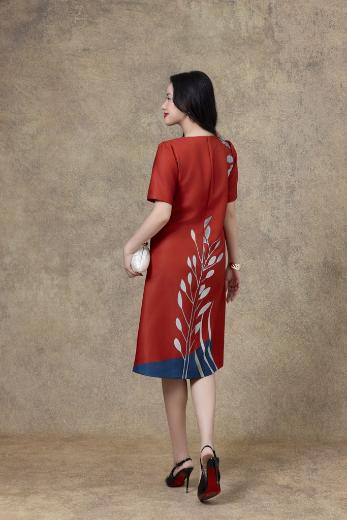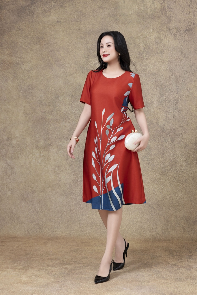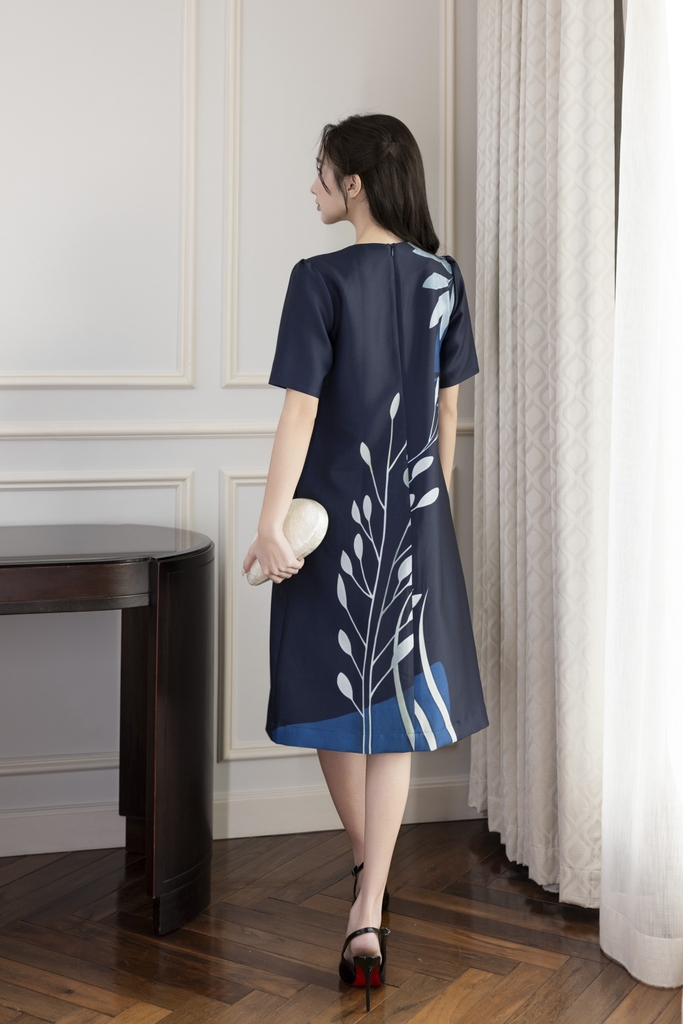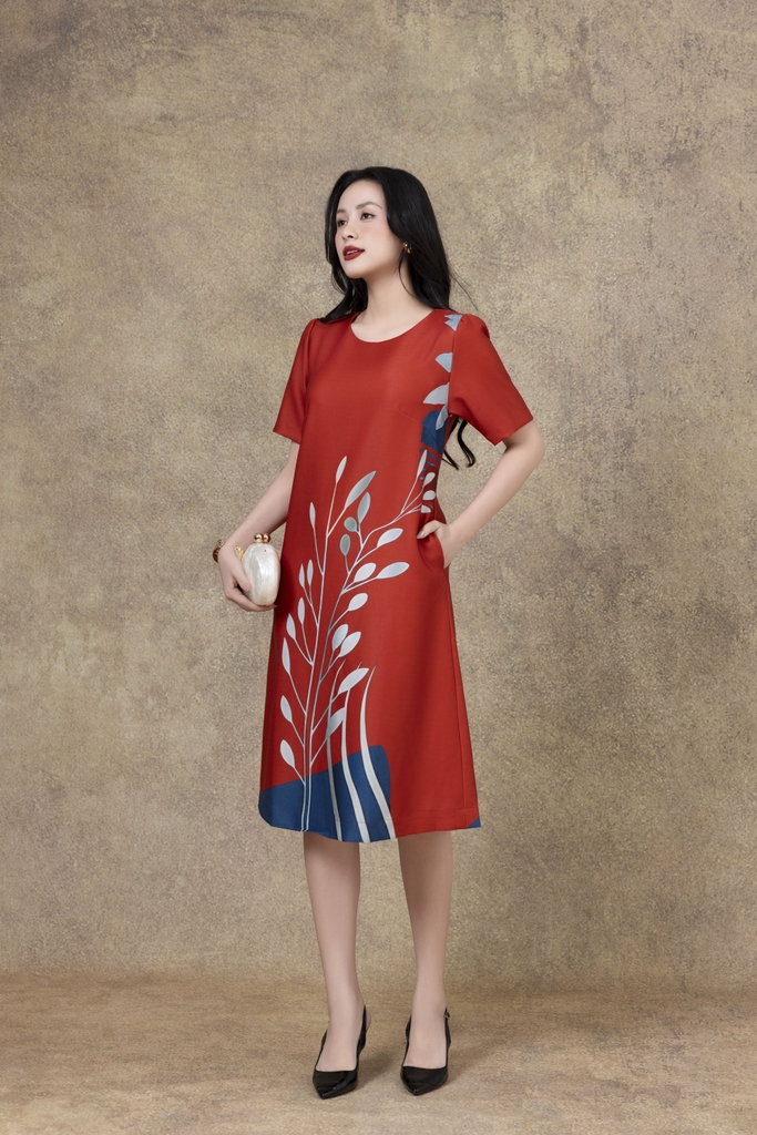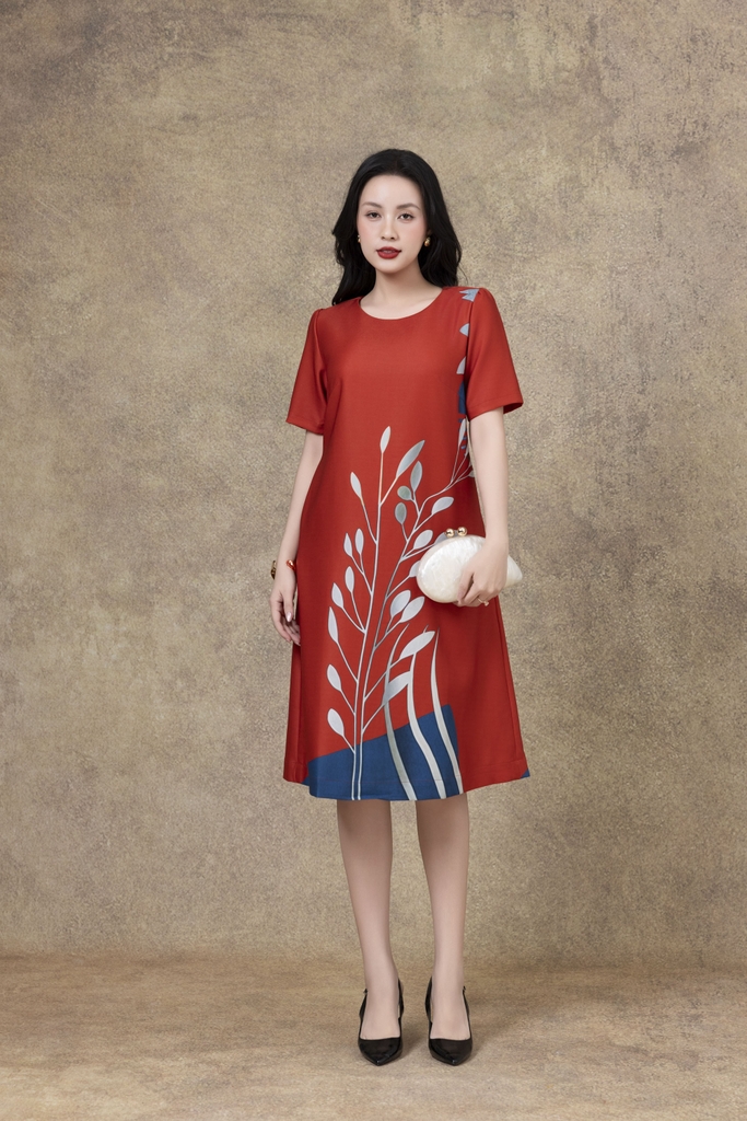 SWANLAKE | Váy Đầm Nữ Phom A Cổ Tròn Tay Ngắn Lụa Dày In Hoa Sang Trọng Đi Tiệc Công Sở D13067LW01