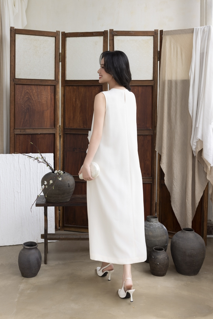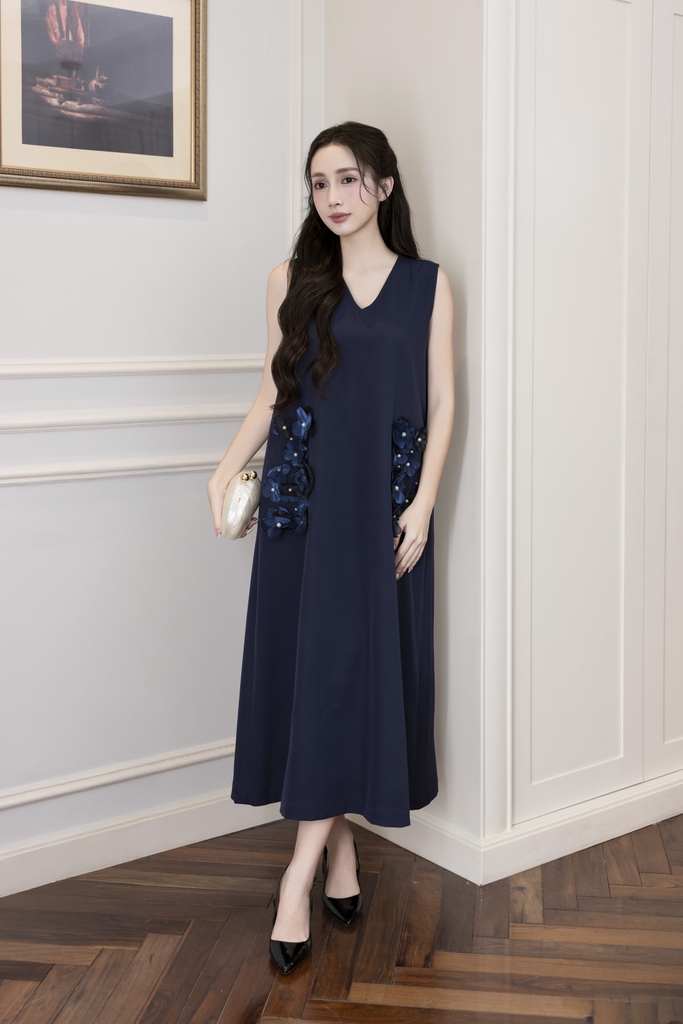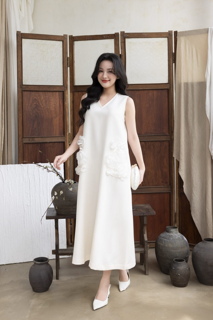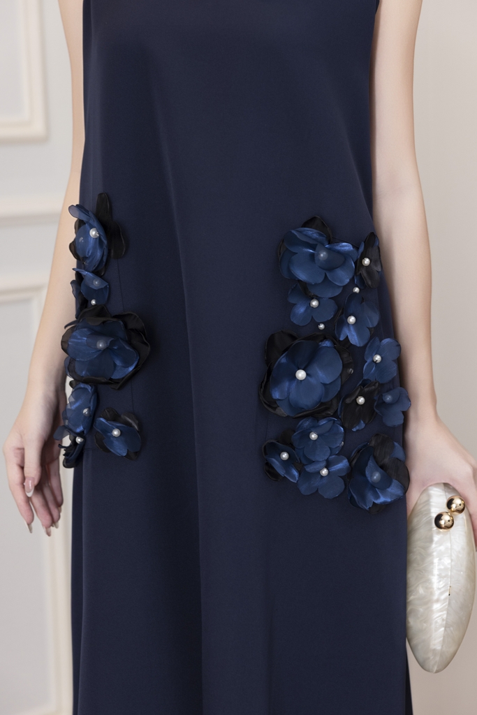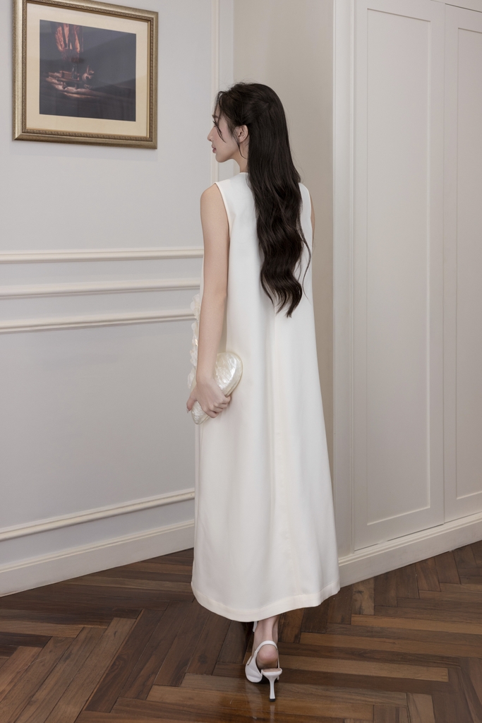 Váy Đầm Nữ Maxi Suông Sát Nách Cổ Tim Lụa Dày Đính Hoa 3D Sang Trọng Đi Tiệc - D12880LW01