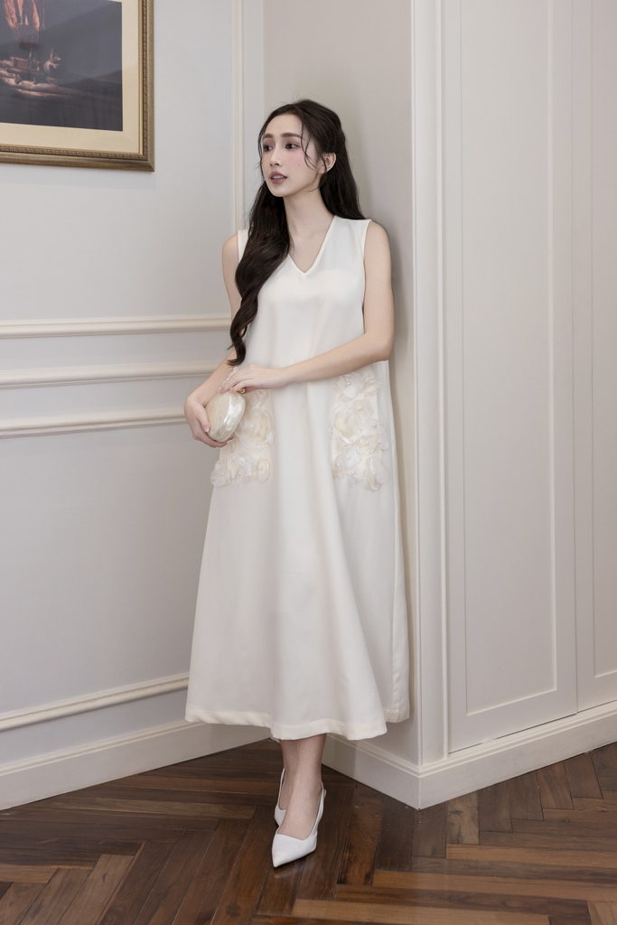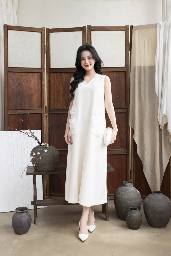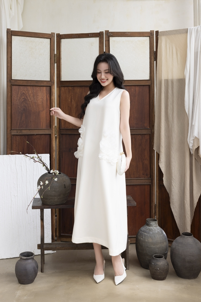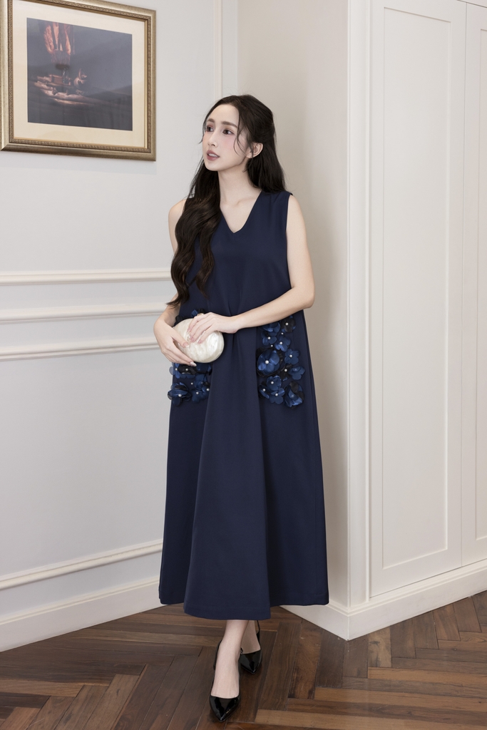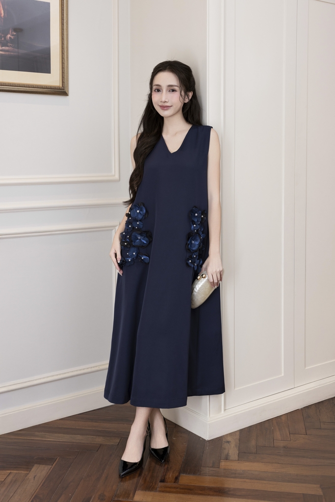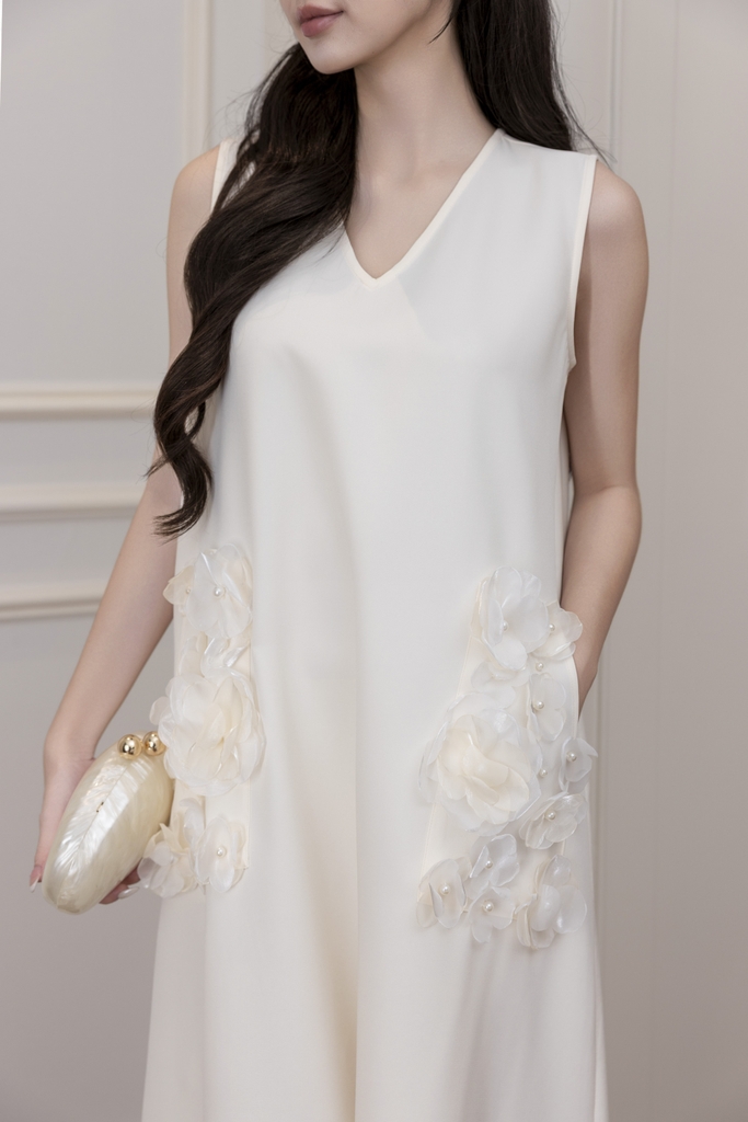 Váy Đầm Nữ Maxi Suông Sát Nách Cổ Tim Lụa Dày Đính Hoa 3D Sang Trọng Đi Tiệc - D12880LW01